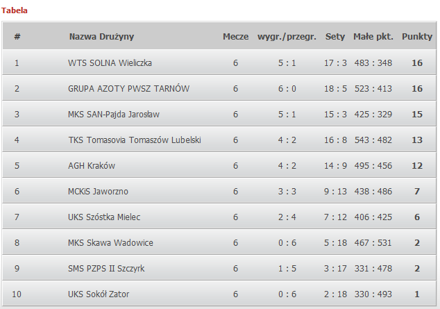 Tabela II ligi kobiet (pzps.pl):