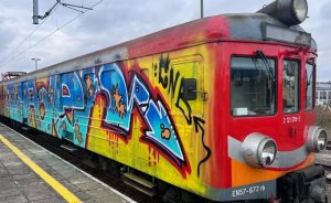 Policja prowadzi śledztwo w sprawie zniszczenia mienia na terenie stacji kolejowej w Wadowicach. Ktoś w nocy pomalował skład stojącego tutaj pociągu.