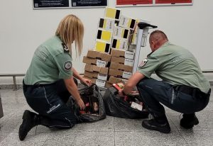 103 kilogramy wyrobów wędliniarskich próbowali wwieźć do Polski pasażerowie tylko jednego rejsu samolotu spoza Unii Europejskiej, którzy zostali skontrolowani na lotnisku Kraków Airport. Zgodnie z przepisami, wyroby zostały zatrzymane i będą zutylizowane.