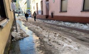 Odwilż w Wadowicach i porywisty wiatr w ciągu kilku godzin zmieniły oblicze miasta. Trzeba uważać na chodnikach, by śnieg i sople nie spadły na głowę z dachu. Na ulicach zalega pośniegowe błoto.