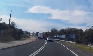 Taka przestroga z rana. Popisy w wykonaniu kierowców z powiatu wadowickiego nagrała kamerka jednego z użytkowników drogi krajowej nr 11. W zachodniej Polsce KWA zderzyło się czołowo z motocyklem.
