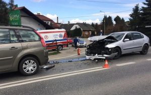 Od kiedy wyremontowano skrzyżowanie drogi krajowej nr 44 w Nowych Dworach, rzadko kiedy dochodzi tutaj do groźnych zdarzeń drogowych. Niestety w piątek zderzyły się tutaj aż trzy auta.