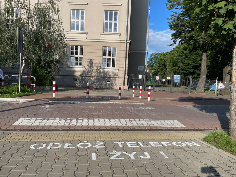 W Wadowicach przy przejściach dla pieszych pojawiły się duże napisy poziome „Odłóż telefon i żyj”. Co to jest za pomysł?