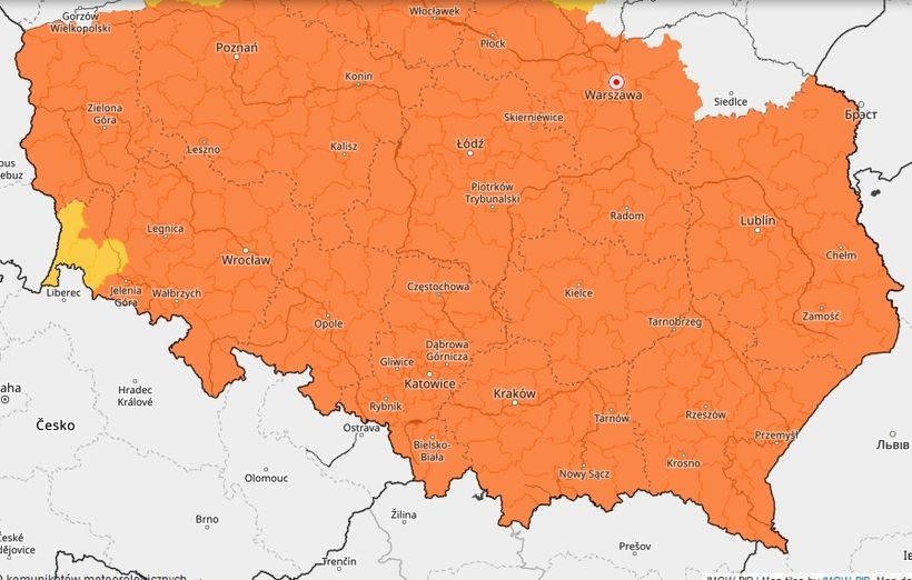 Na mapach pogodowych IMGW oznaczono alert drugim z trzech stopni alertów pogodowych i obowiązuje od w godzinach popołudniowych do godzin wieczornych włącznie.