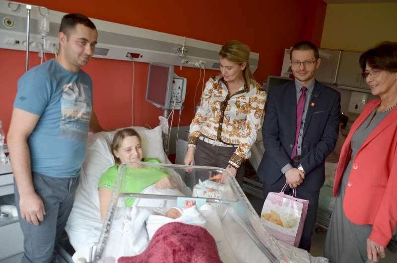 Gratulacje rodzicom składała też poseł Ewa Filipiak, która całkiem niedawno została babcią, a jej wnuk również przyszedł na świat w wadowickim szpitalu.