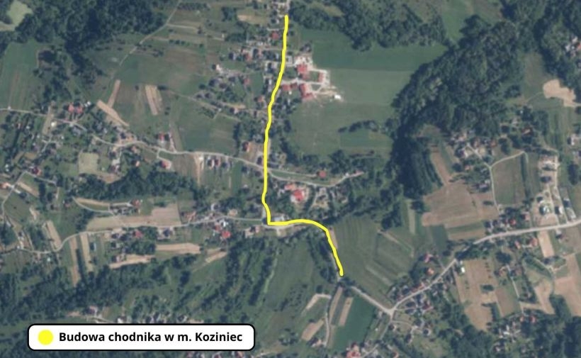 Nowy chodnik będzie miał długość 850 metrów i połączy kluczowe miejsca w Kozińcu, takie jak kaplica pw. Matki Bożej Różańcowej, dom kultury czy remiza.