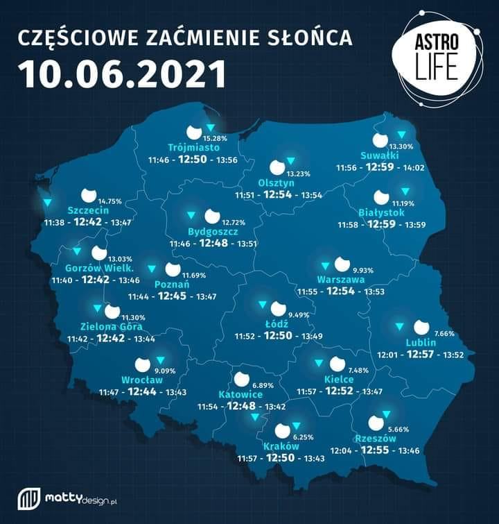 To pierwsze od 2015 roku częściowe zaćmienie słońca, które będą mogli zaobserwować Polacy. W czwartek (10.06) od godziny 11:37, mieszkańcy północno – zachodniej Polski będą mogli zaobserwować nasuwający się na słońce księżyc.