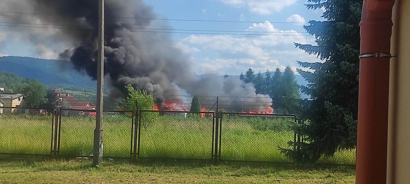 Jak informują strażacy, do poważnego zaproszenia ognia doszło w zakładzie stolarskim w Białce koło Jordanowa. Ogień szybko rozprzestrzeniał się po hali, gdzie magazynowane było drewno.