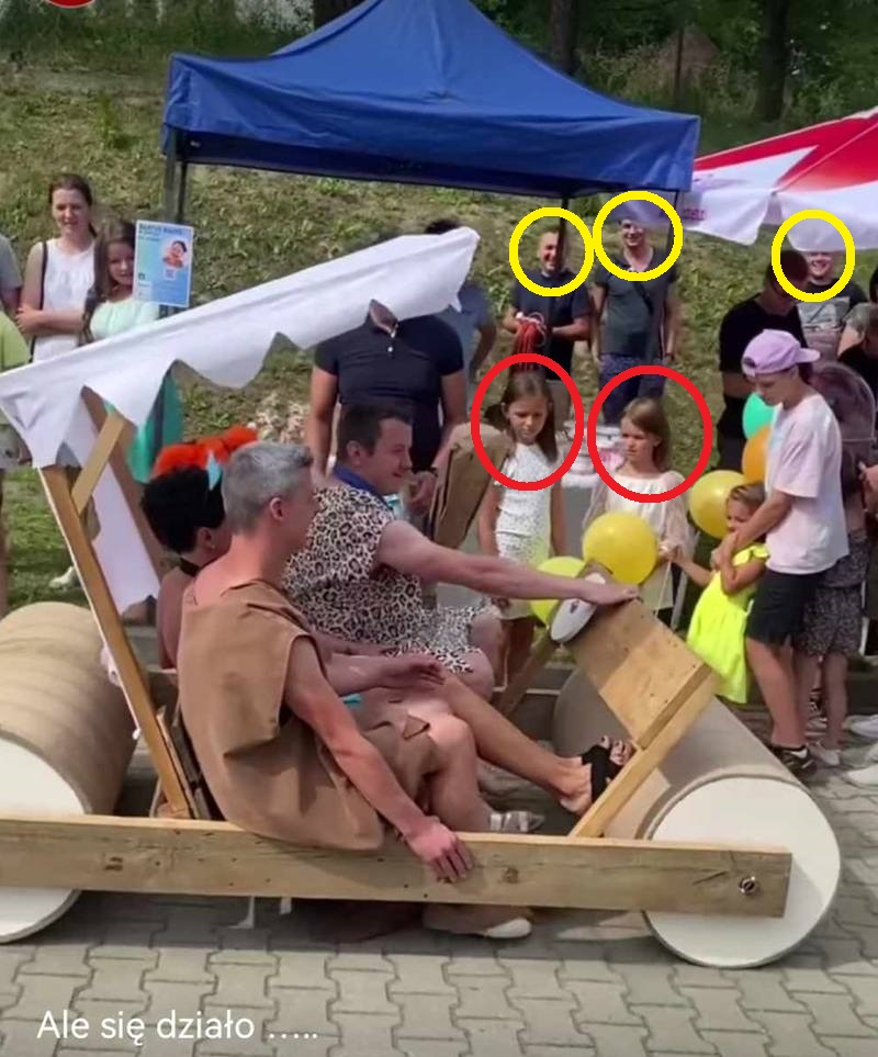 Znalazła się jednak grupa zaangażowanych dorosłych, która chciała pokazać dzieciakom, jak można się bawić i przyjechała „flinstonowyn” pojazdem na miejsce imprezy. Trzeba przyznać, że odwzorowanie wyszło naprawdę dobrze. Tak samo jak stroje bohaterów, czyli Freda, Barneya Wilmy i Betty.