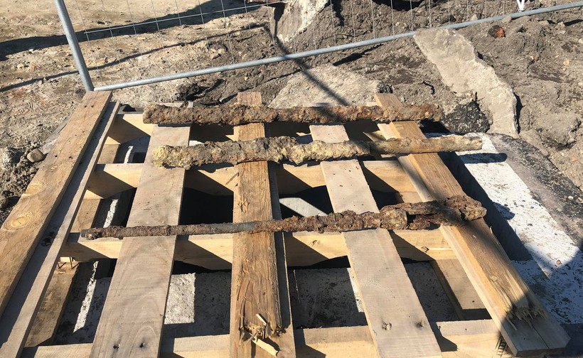 Robotnicy odkopali w czwartek na placu budowy rodna przy ulicy Wałowej pozostałości broni palnej i amunicji. Skarbu pilnuje straż miejska. Może mieć wartość historyczną.