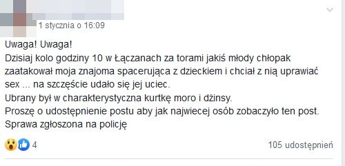 Mieszkańcy Łączan najedli się strachu po tym, jak w sieci pojawiły się informacje o mężczyźnie zaczepiającym kobietę z wózkiem. Nieznajomy miał jej złożyć wulgarną propozycję, a ona uciekać. Policja wyjaśnia sprawę.