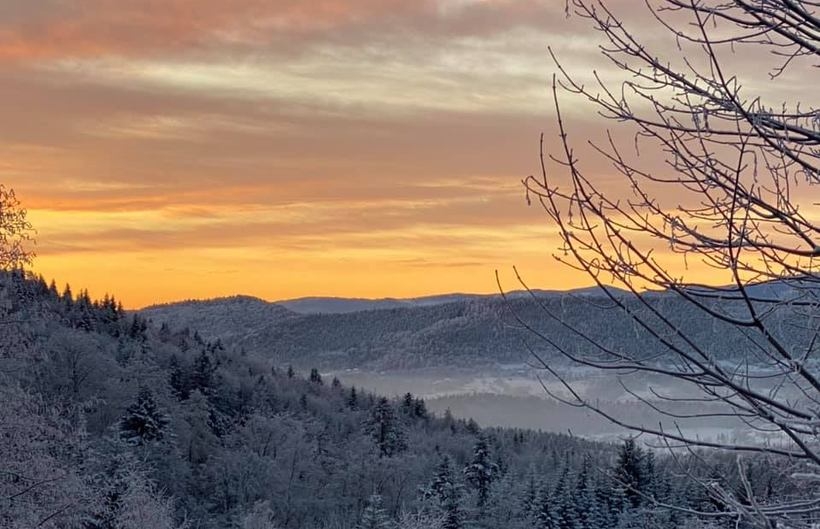 Pięknie wschodziło dzisiaj słońce nad Leskowcem. Najbliższe godziny będą godziny będą dość spokojne. Może lekko poprószyć śnieg, a temperatury nie powinny spadać poniżej minus 10 stopni Celsjusza. Niebawem jednak może się to zmienić.