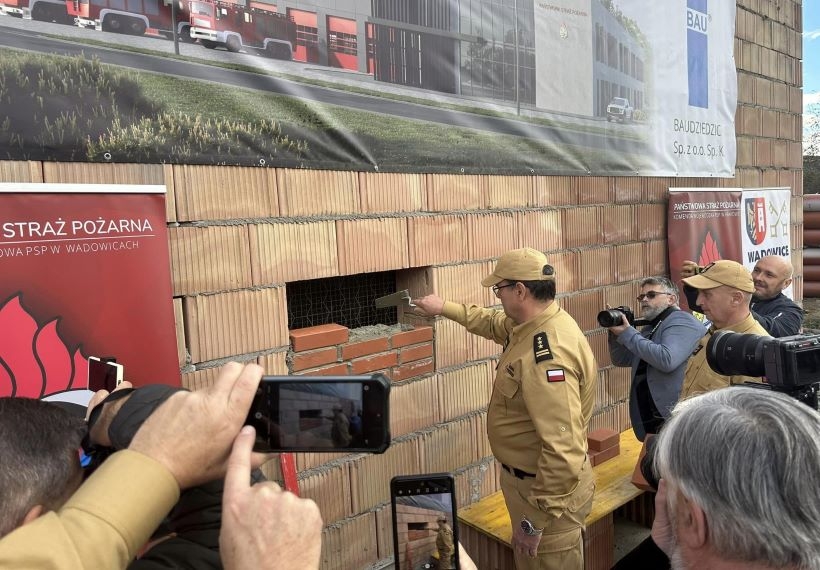 Przypomnijmy. Przy ulicy Błonie w Wadowicach powstaje nową siedziba wadowickich strażaków – strażnica komendy powiatowej. W środę wmurowano tutaj kamień węgielny.