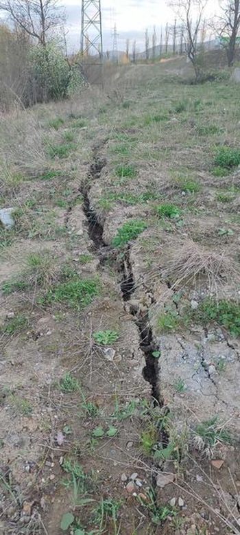 Na zdjęciach widać sporych rozmiarów szczeliny w ziemi, a także rozpadający się mur oporowy. Ten sam mur, który jakiś czas temu był naprawiany. ( fot. nadeslane)