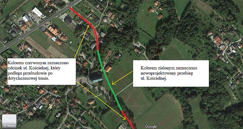 Pomiędzy kościołem, a boiskiem powstanie również nowy parking, który projektowany jest przez innego wykonawcę. Zmiana trasy drogi wymusi również przesunięcie znajdującej się tutaj kapliczki. Dzięki przebudowie wszyscy mieszkańcy zyskają możliwość podłączenia do sieci wodno-kanalizacyjnej, gazowej, sieci teleinformatycznej oraz energetycznej.