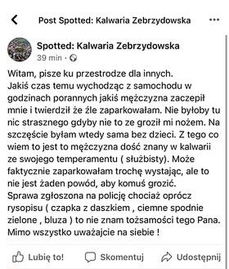 Dopóki chodził w mundurze wojskowym i w hełmie na zakupy, to jego sprawa, ale teraz przechodzi sam siebie – opowiadają w Kalwarii.