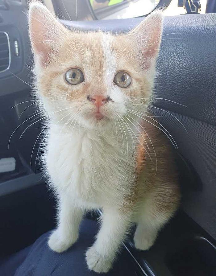 Mały kotek spotkał na swej drodze istne anioły – twierdzi w swoim komunikacie miejscowa policja. Policjanci drogówki uchronili go przed potrąceniem na ruchliwej drodze krajowej, zabrali futrzaka do radiowozu, podzielili się z nim swoim posiłkiem i zapewnili mu dalszą opiekę.
