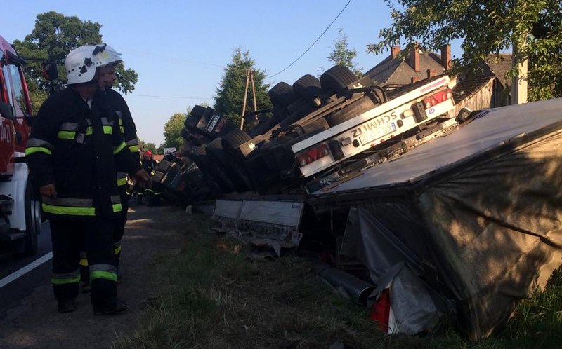 Do tego groźnie wyglądającego zdarzenia doszło na drodze krajowej w Graboszycach. Wyładowany po brzegi ciężkim ładunkiem tir wywrócił się i wylądował w przydrożnym rowie. Jego ładunek uderzył w płot pobliskiej posesji.