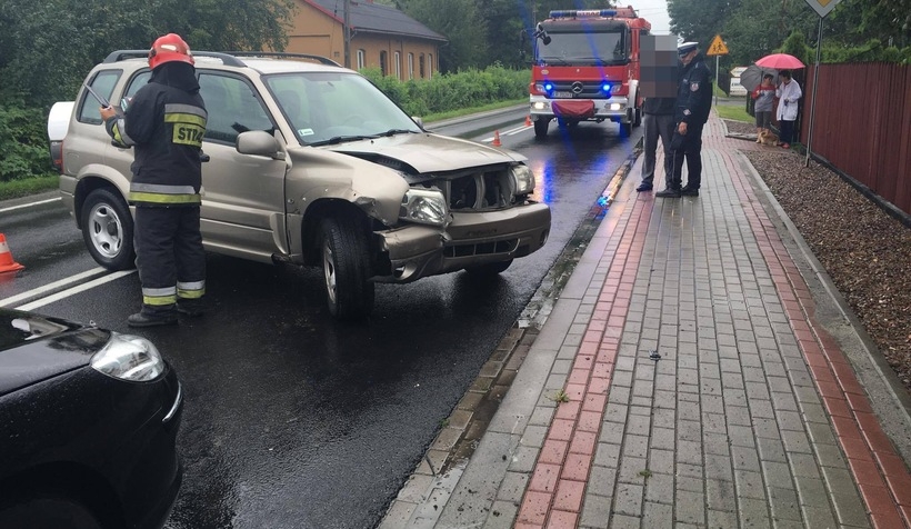 Wjeżdżająca do miasta kierująca suzuki vitarą nagle zjechała z jezdni na chodnik i zatrzymała się dopiero na betonowym ogrodzeniu sąsiadującej z drogą prywatnej posesji. Ogrodzenie i samochód są zniszczone.