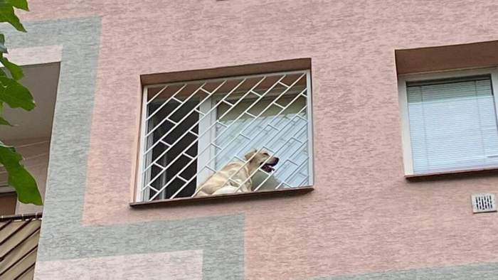 Labrador wył siedząc na parapecie. Nie mógł wydostać się z pułapki