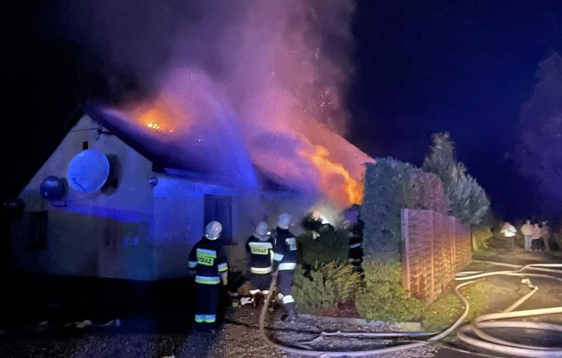 Jak informują strażacy, ogień strawił dach parterowego budynku i zaczął trawić część mieszkalną. Na miejsce zdarzenia trzeba było dostarczać wozami wodę do gaszenia pożaru.