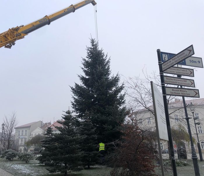 Ma 12 metrów i przyjechała tutaj z Kleczy Dolnej. Piękna choinka stanęła na rynku w Wadowicach