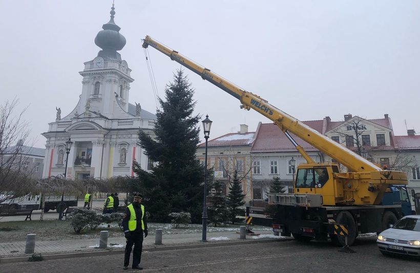 W tym ospałym od zimy i pandemii koronawirusa miejscu zatrzymano na chwilę ruch, by w wyznaczonym lata temu miejscu stanęła świąteczna choinka.