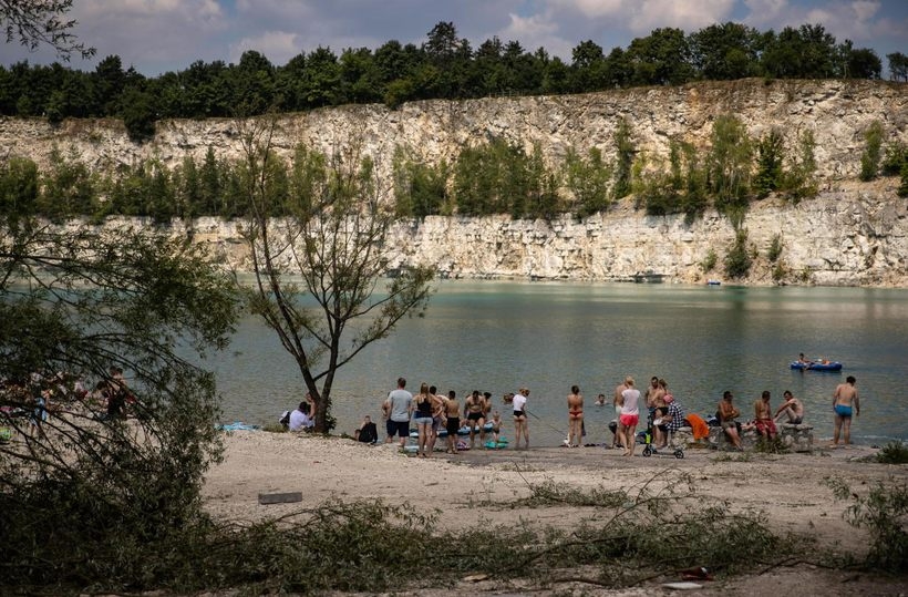 Mandaty dla plażowiczów w Zakrzówku. Niektórzy wciąż skaczą do wody ze skalnych osuwisk