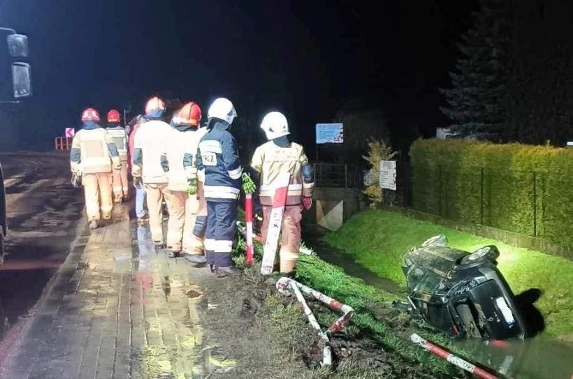 We wtorek tuż po godzinie 22 pracownicy jadąc ulicą Beskidzką w Wieprzu, zauważyli leżący na boku w przydrożnym rowie z wodą, samochód marki Renault.