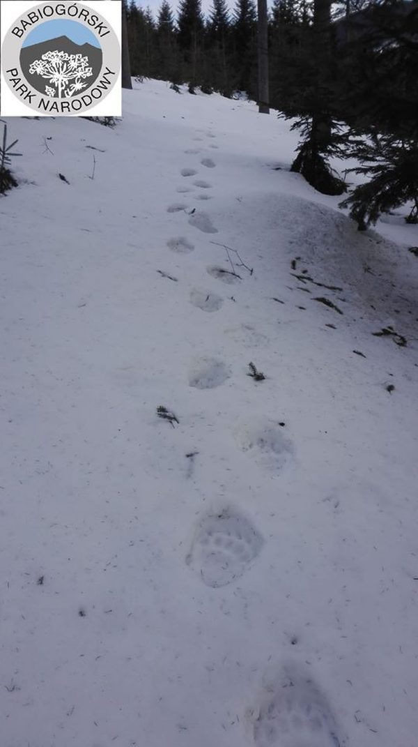 Pracownicy Babiogórskiego Parku Narodowego opublikowali zdjęcia świeżych śladów niedźwiedzia na śniegu.