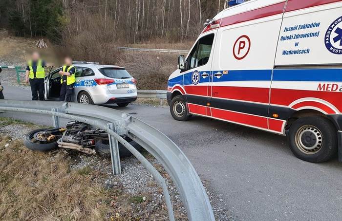 Motocyklista wbił się w barierkę na zakręcie w Zagórzu. Łatwo o nieszczęście, zostańmy w domach