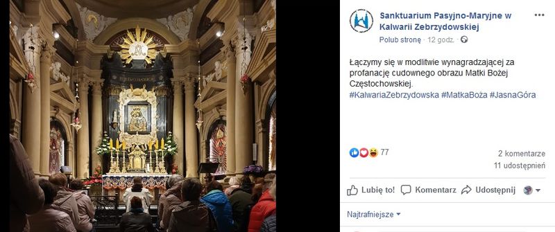 Sprawa ingerencji w wizerunek Matki Bożej Częstochowskiej zatacza coraz szersze kręgi. Trwa postępowanie przeciwko pomysłodawczyni, a ludzie zaczynają się modlić o przebaczenie. Tak było na przykład w Kalwarii Zebrzydowskiej.
