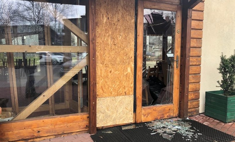 Ostatniej nocy znów ktoś wybił szybę w drzwiach restauracji. Wcześniej dochodziło tutaj do podobnych zdarzeń, w międzyczasie kolejnych zniszczeń w niedziałającej restauracji dokonała wichura.