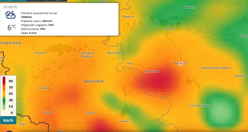 Niestety potwierdzają się na mapach pogodowych wcześniejsze doniesienia o silnych porywach wiatru, które mogą nawiedzić powiat wadowicki w najbliższy czwartek (11.03).