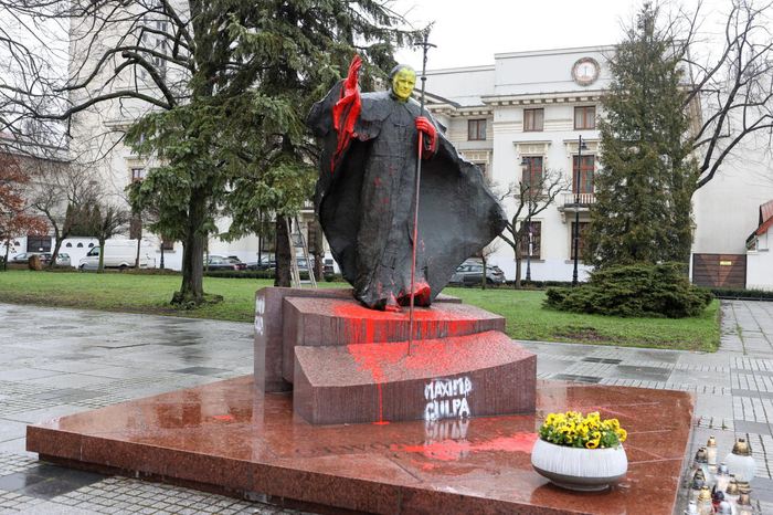 Niestety w ostatnich dniach docierają informacje o niszczeniu pomników z wizerunkami papieża na terenie kraju. Tak było chociażby w Łodzi ( foto: Fot. PAP/Marian Zubrzycki)