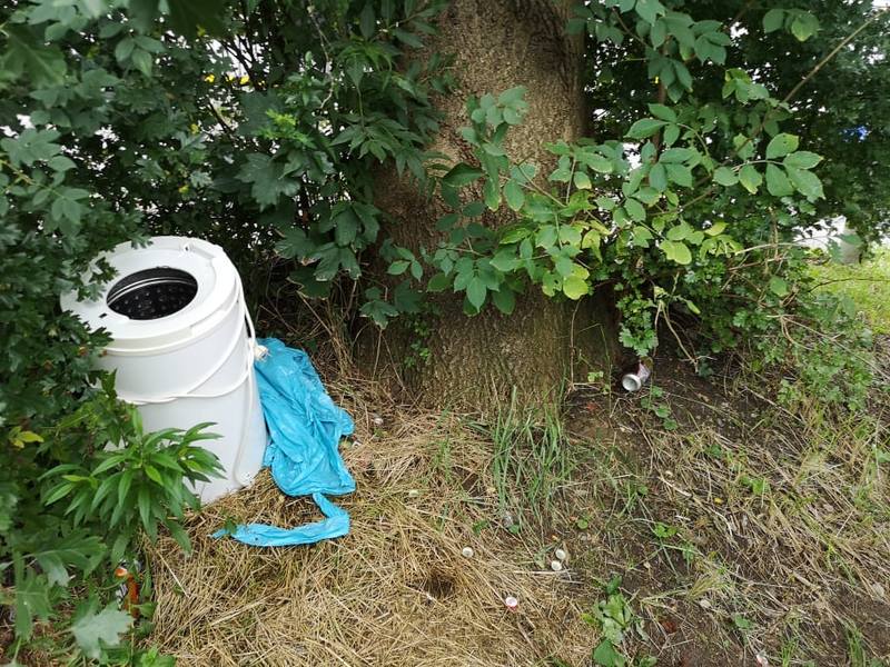 Na chwilę obecną leży tutaj stara wirówka, worek ze śmieciami i kilka innych odpadów, które nie zdążyła zarosnąć jeszcze roślinność. Wirówkę i worek musiał ktoś podrzucić w ciągu ostatnich godzin. Oburzeni mieszkańcy załamują już ręce i proszą nas o interwencję.