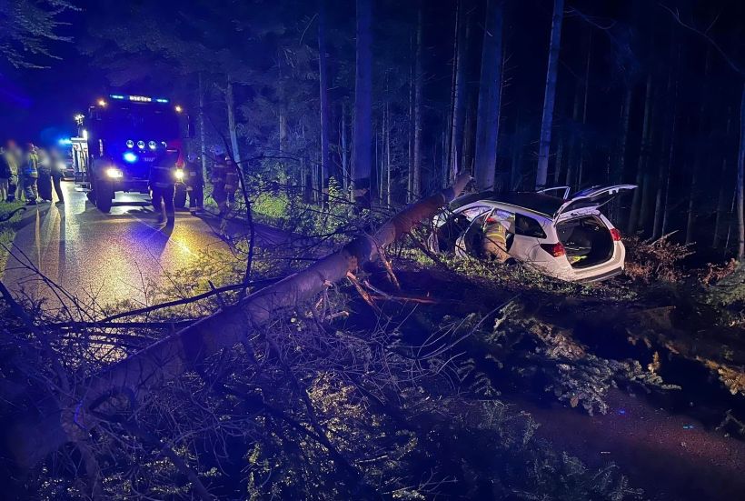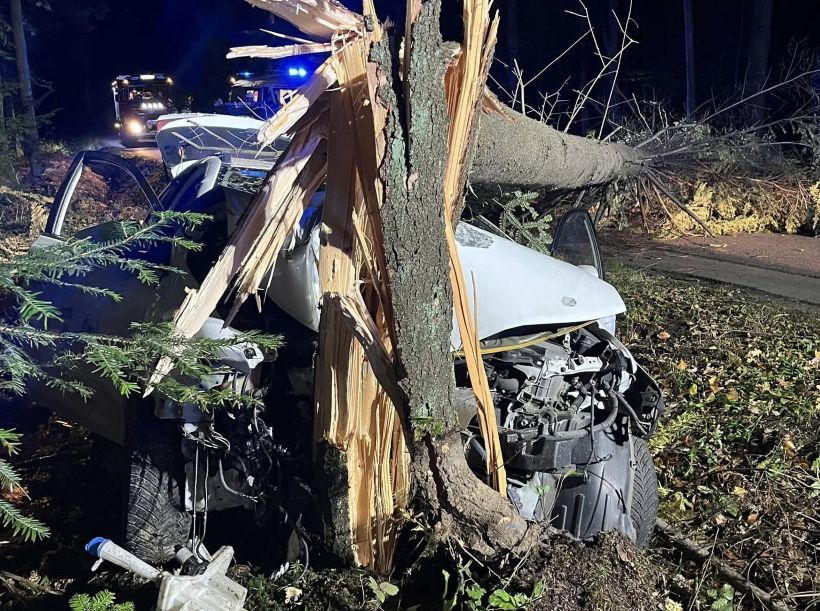 Pierwszy z pojazdów uległ poważnym uszkodzeniom, a drzewo, w które uderzył samochód, zostało ścięte i upadło na drogę, tarasując przejazd. Na pień na jechał kolejny samochód, ale w tym przypadku doszło jedynie do uszkodzenia zderzaka.