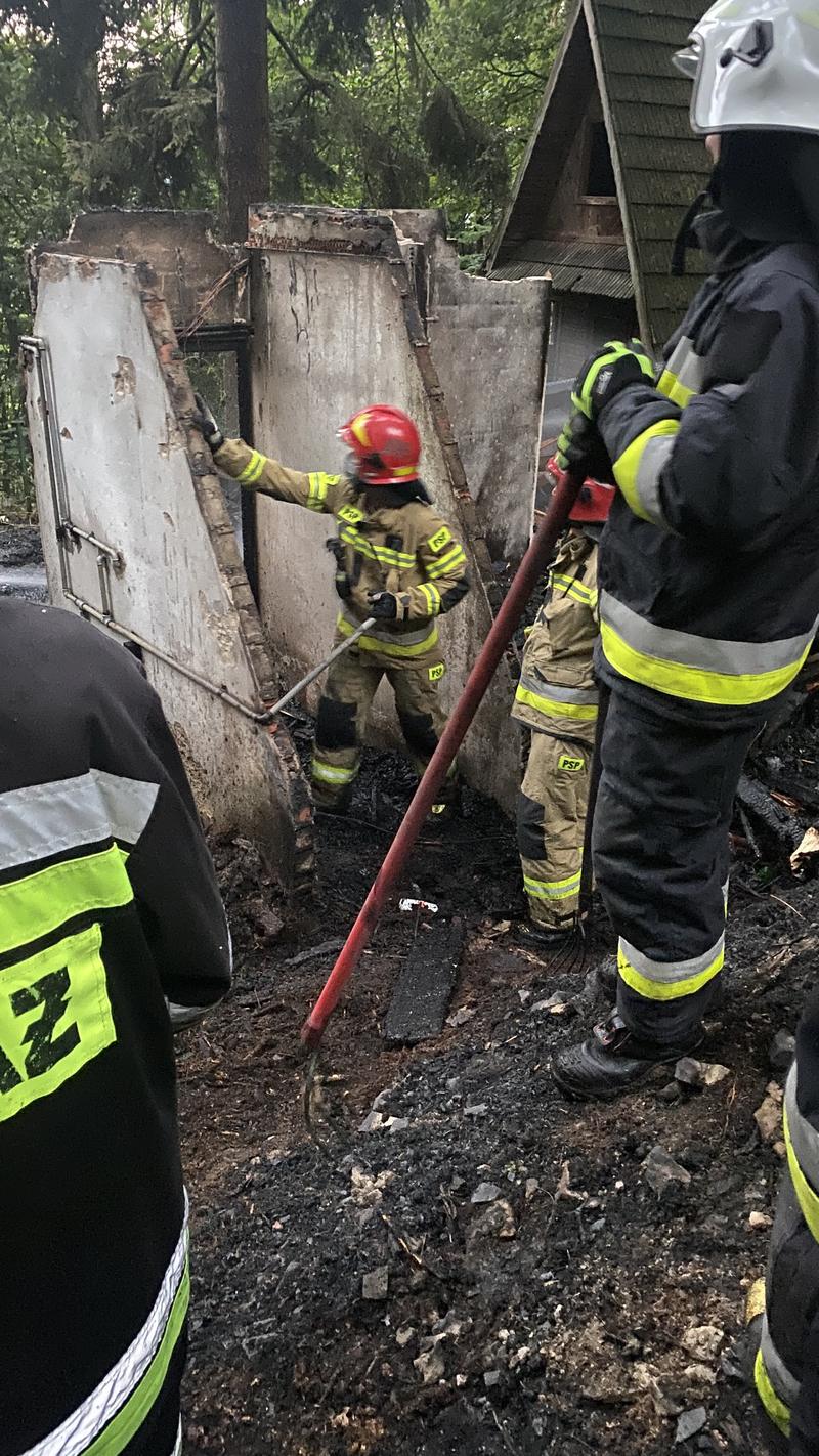 Płonący domek mógł podpalić las. To była trudna akcja strażaków