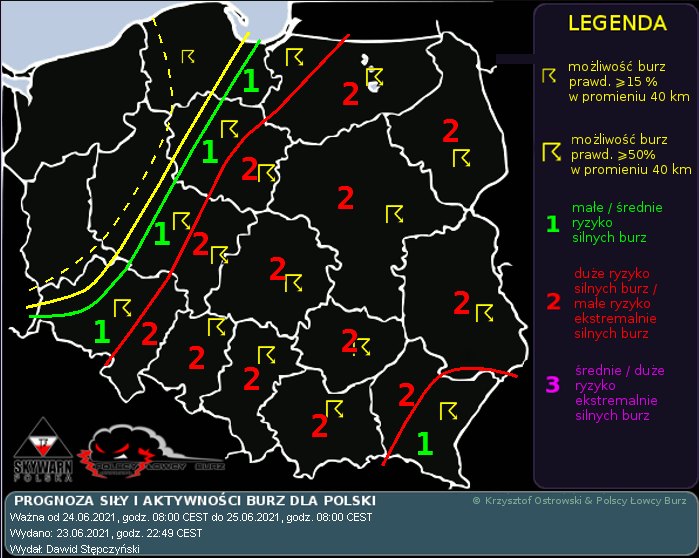 W czasie burz wiatr w porywach do 110 km/h, wieczorem lokalnie do 90 km/h – dodają synoptycy.