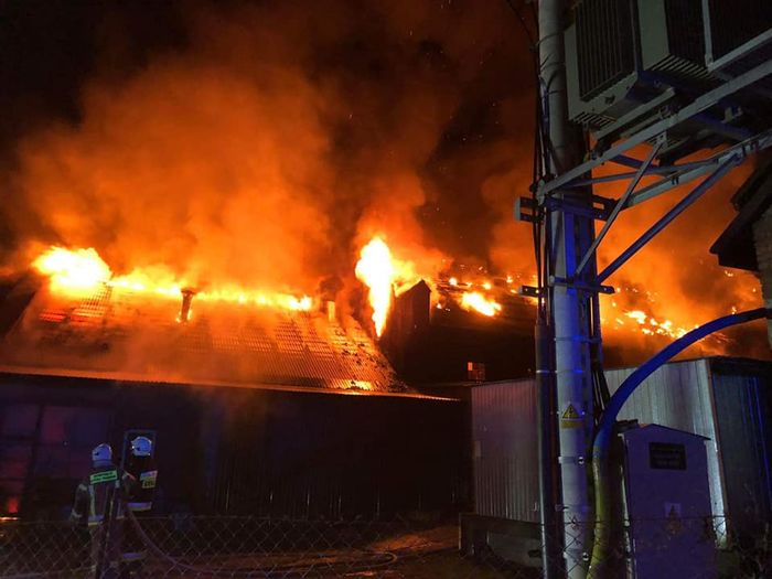 Spłonęły dwa budynki produkcyjne wraz z wyposażeniem, materiałem oraz gotowymi produktami. Straty na pewno będą bardzo duże – dodaje rzecznik policji.