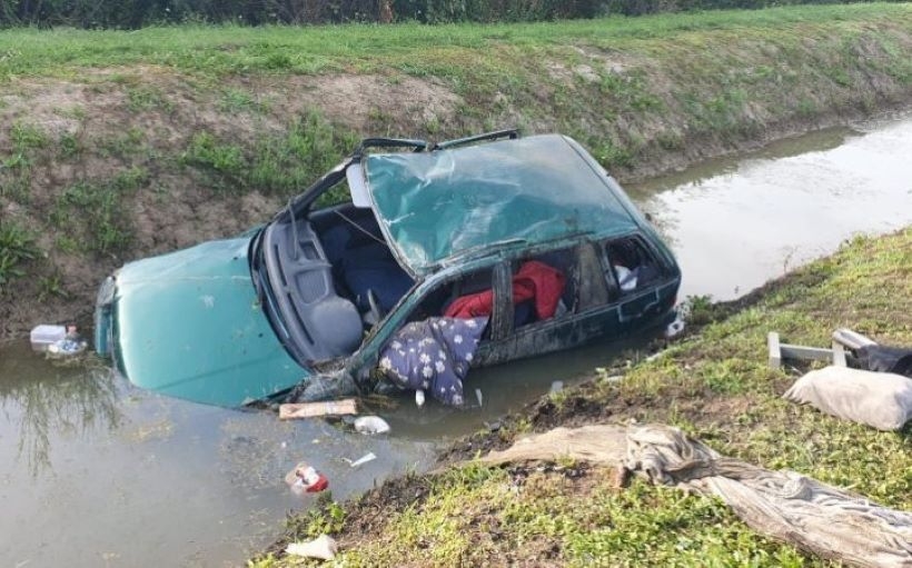 Następnie pojazd dachował i wpadł do rowu melioracyjnego.