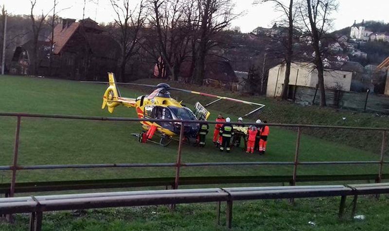 Na miejsce wezwano strażaków, pogotowie ratunkowe i policję. Jak się okazuje stan poszkodowanej był na tyle poważny, że zdecydowano się na wezwanie helikoptera Lotniczego Pogotowia Ratunkowego, który przetransportował kobietę do specjalistycznego szpitala.