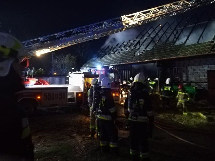 Poważny pożar w Kleczy. W ogniu stanęła stodola ze zwierzętami i garażem