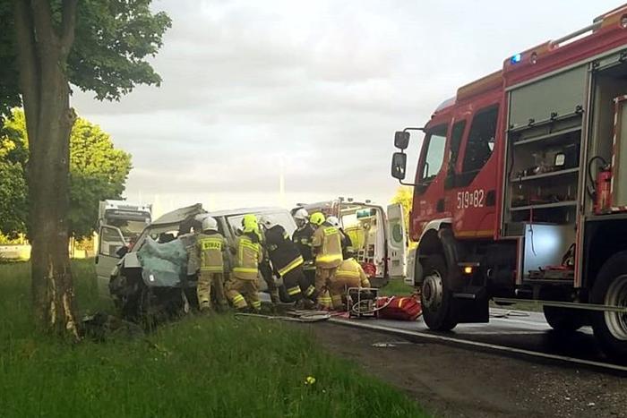 Wstępnie ustalono, że kierowca auta dostawczego volkswagen stracił panowanie na łuku drogi. W wyniku tego zjechał z jezdni i uderzył w drzewo.