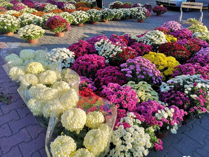 Przedświąteczna krzątanina na cmentarzach i przy cmentarzach. Tłumy ludzi zmierzają na groby swoich bliskich, by je wysprzątać i przygotować do święta. Sprzedawcy chryzantem w tym roku mogą bez problemu sprzedawać plony swojej pracy.