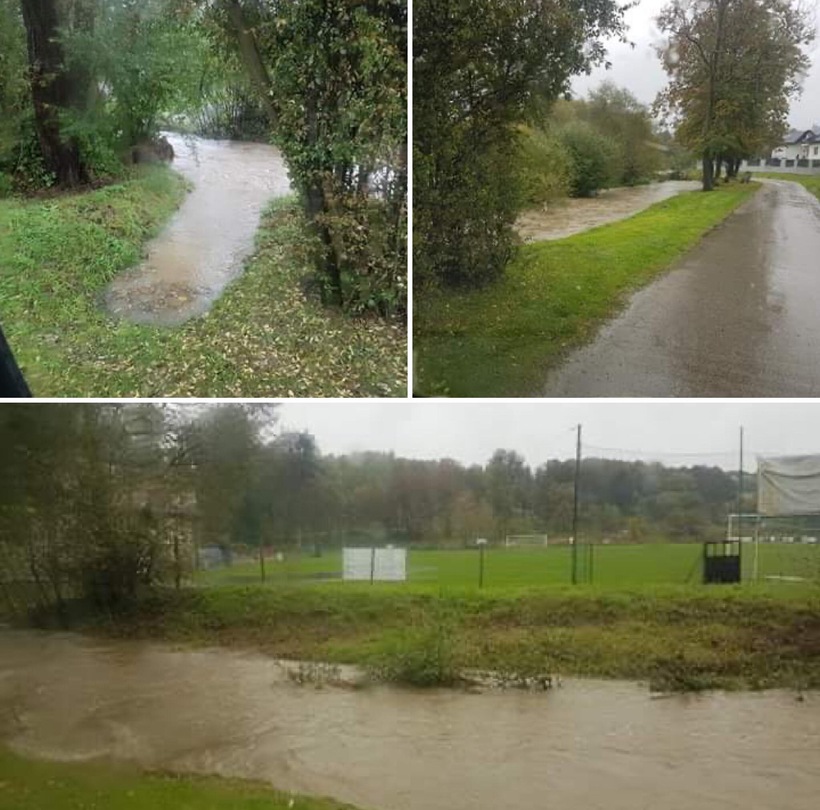 Tradycyjnie już problemy z nadmiarem wody mają lokalne kluby sportowej. W Barwałdzie Średnim Kleczanka zalała boisko Filkówki, podobnie w Barwałdzie Dolnym na boisku Żarka. W Ryczowie zalewa stadion sportowy, druhowie z tutejszej OSP rozpoczęli budowę tamy z worków z piaskiem, by uratować boisko przed zalaniem.