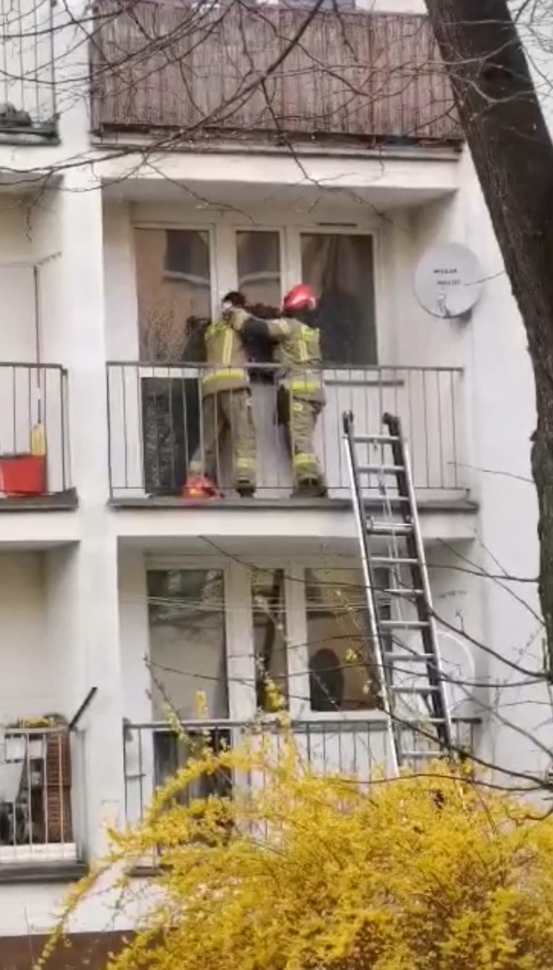 Na miejscu okazało się, że nikt nie podchodzi do domofonu. Z racji tego, że wezwanie dotyczyło mieszkania na pierwszym piętrze strażacy nie tracąc czasu ustalili, który balkon należy do mieszkania i postawili drabinę.