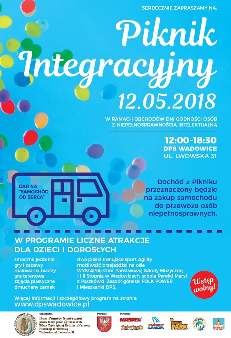 Nazaretanki prowadzące DPS na ul. Lwowskiej w Wadowicach mają problem. Samochód, którym od 20 lat wożą niepełnosprawnych, odmawia posłuszeństwa. Pieniędzy na nowy brak, dlatego siostry postanowiły wziąć sprawy w swoje ręce i organizują piknik, z którego dochód zostanie przeznaczony na nowe auto. Czujcie się zaproszeni!