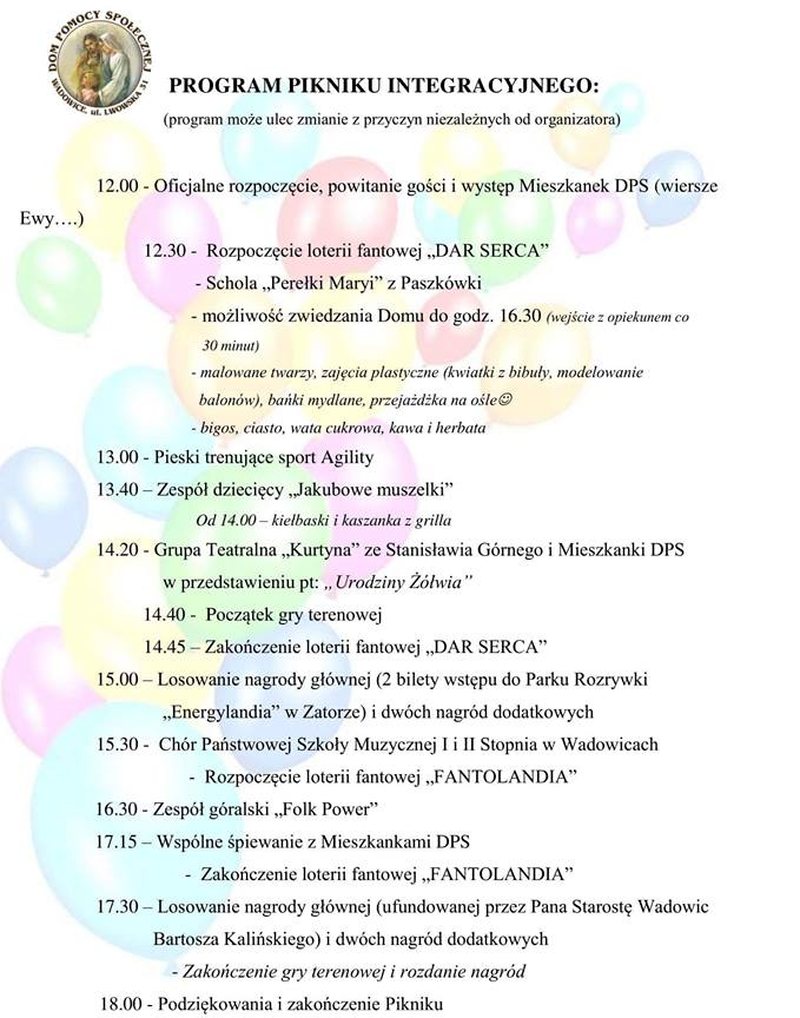Staraliśmy się przygotować atrakcyjny program, w którym nie zabraknie ciekawych występów i konkursów, loterii fantowych, gier terenowych. Gwarantujemy też smaczne jedzenie oraz wspaniałą, rodzinną atmosferę. Będzie to też okazja do zapoznania się z Mieszkankami DPS-u oraz z tym, czym zajmują się na co dzień. Podziwiać będzie można ich zdolności plastyczne, taneczne oraz sportowe – zachęcają siostry Nazaretanki.