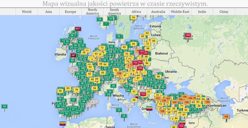 Zobacz jak jakość powietrza w Polsce wygląda na mapie świata ( bieżące dane)
